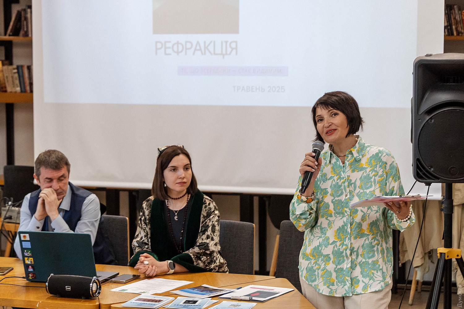 Відкриття фестивалю української концептуальної фотографії «Рефракція» відбулося 3 травня в Одеській обласній універсальній науковій бібліотеці імені Грушевського. Фестиваль — це проєкт артоб'єднання Kyivphotos-Hall 2012, що зібрав фотохудожників з різних регіонів України та Німеччини. В експозиції представлені роботи майстрів з Одеси, Києва, Дніпра, Хмельницького, Кривого Рогу, Івано-Франківська, Полтави, Кропивницького, Запоріжжя та німецького міста Фладунген. Головна тема фестивалю — трансформація ідентичності під впливом середовища. За словами куратора фестивалю Маї Макеєвої, фізичний термін «Рефракція» обрано як метафору внутрішніх змін людини. «Рефракція — це не руйнування, а перетворення, — зазначає Мая Макеєва. — Як світло, проходячи через скло, змінює форму, так і людина, переживаючи кризи, може стати іншою — сильнішою, ціліснішою».