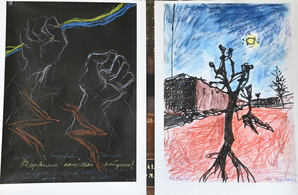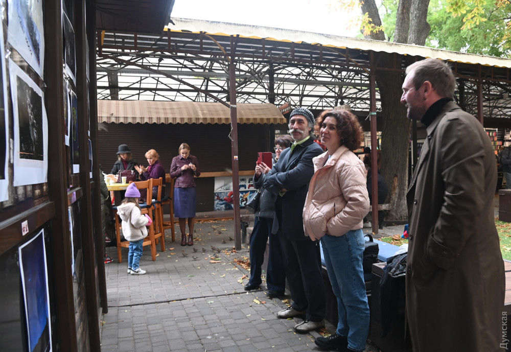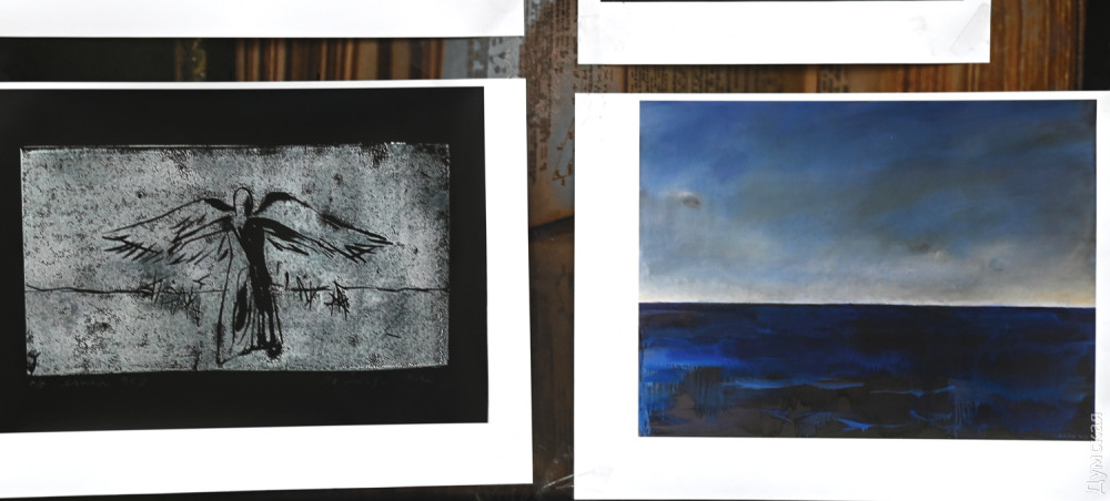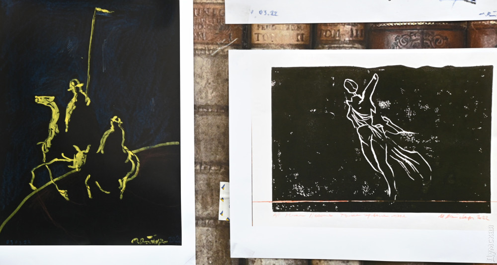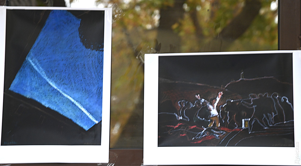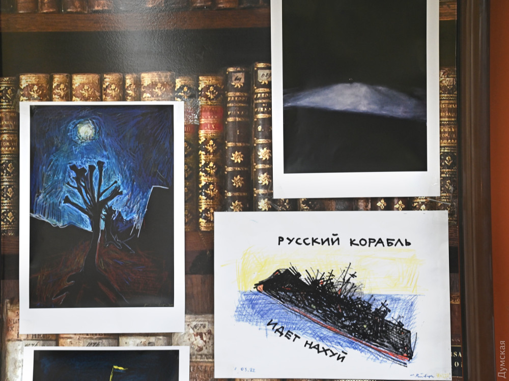 В експозиції на стінах «Книжки» представлені принти робіт з живописних і графічних серій, написаних цього року — «Подорожній щоденник», «Тонка червона лінія» та інші. Особливу увагу глядачів привернула серія «Зерновий караван», написана після відвідин Одеси в серпні.