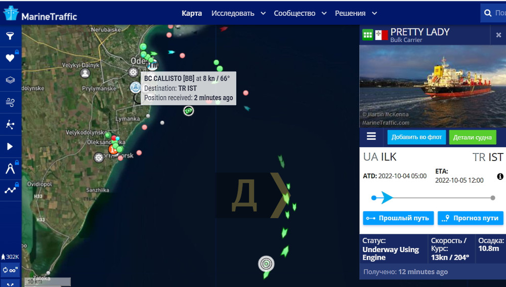 Першим йде суховантаж PRETTY LADY, за ним - SSI RELIANCE, ARGO I, SAM, BARON, CHRYSSA K, INANDI та BC CALLISTO.