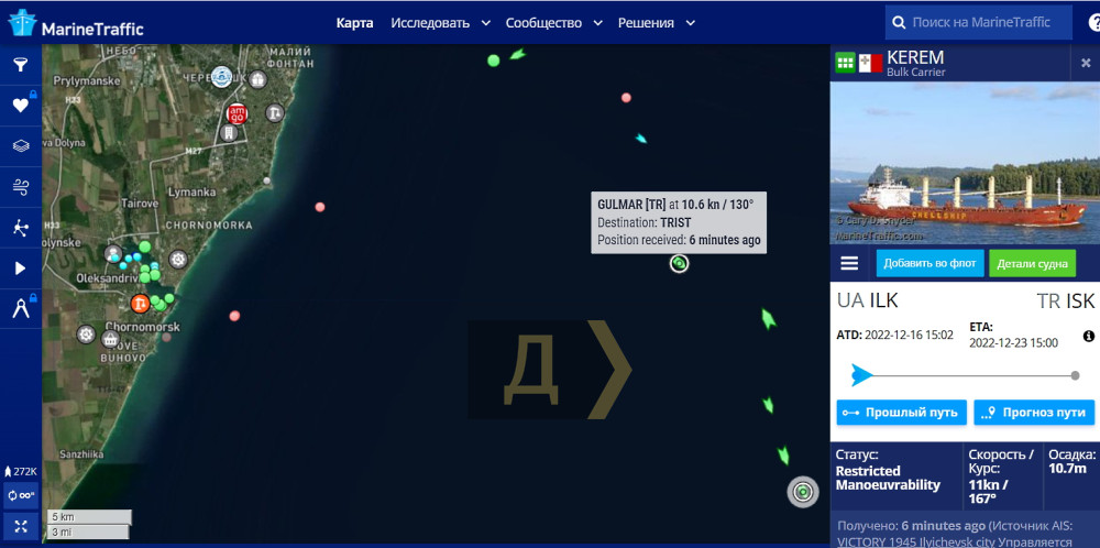Сьогодні до турецького узбережжя з портів Великої Одеси вирушили чотири судна. Очолив караван балкер KEREM, за ним ідуть FALCON S, NYMPHI та GULMAR.