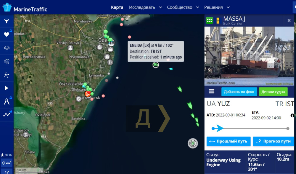Очолив рух до гирла Дунаю балкер MASSA J, що вийшов з порту Південний, за ним рухаються NAZAR S з Чорноморська, HELGA з Одеси, LADY AILLAR та MARAN ASTRONOMER з Південного, DAYTONA DYNAMIC з Одеси та BOSPHORUS PRINCE/ENEIDA з Чорноморська.
