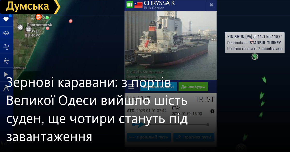 Вранці 1 січня з портів Великої Одеси вирушило шість суден.