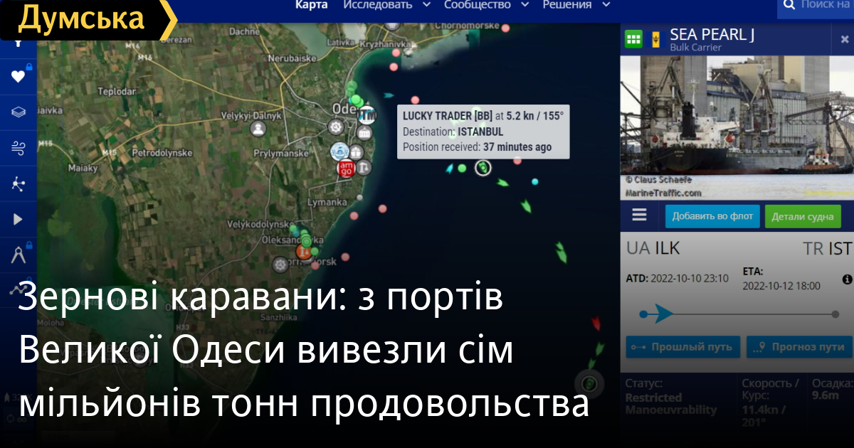 Зернові каравани: з портів Великої Одеси вивезли сім мільйонів тонн продовольстваСім мільйонів тонн сягнув експорт українського продовольства з портів Великої Одеси за час дії зернової угоди. 11 жовтня від узбережжя до гирла Дунаю вирушило вісім суден. Першим іде суховантаж SEA PEARL J, за ним ідуть HAZAR S, EKMEN TRANS, MELINA, INCE EVRENYE, MAGNUM POWER, LUCKY TRADER і танкер ERDEK. Загалом з 1 серпня в рамках зернової ініціативи з портів Одещини вийшло 316 суден. Найбільший караван із 13 балкерів і суховантажів, з 230 тис. тонн української агропродукції у трюмах, вийшов 9 жовтня. До одеського узбережжя поспішають чотири суховантажі, ще кілька суден чекають своєї черги зайти в порти на якірній стоянці. СМЕРТЬ РОСІЙСЬКИМ ОКУПАНТАМ! Помітили помилку? Виділяйте слова з помилкою та натискайте control-enter |