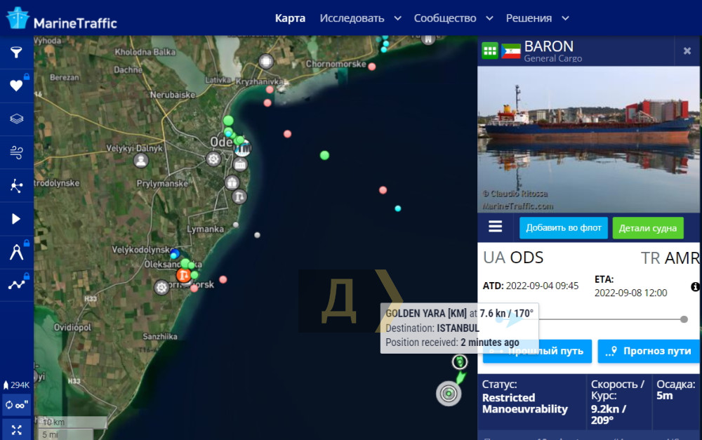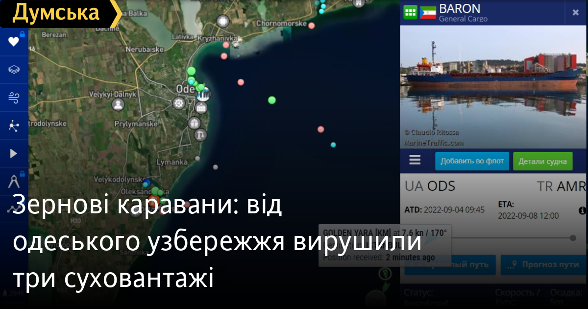 Балкер BARON вийшов з Одеси, MY MERAY із Чорноморська, а GOLDEN YARA з порту «Південний». Усі три судна йдуть у порти Туреччини.