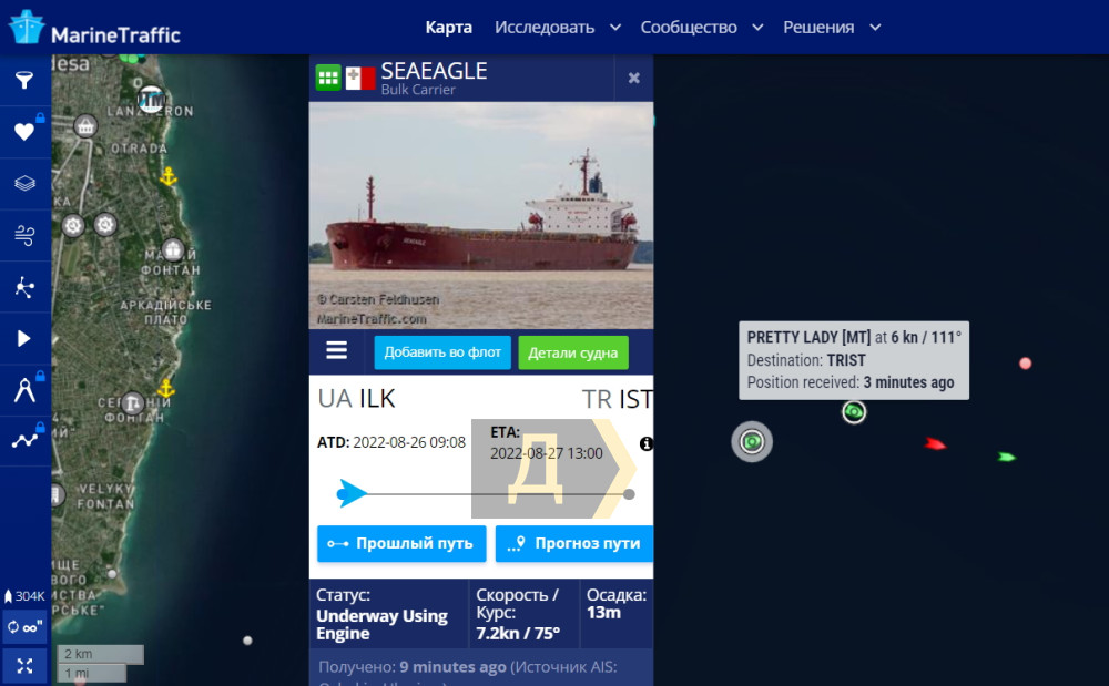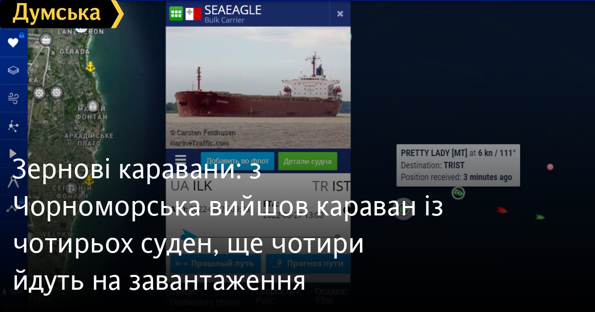 Першим порт залишив танкер AVIVA під прапором Маршаллових островів. За ним вийшли балкери ZELEK STAR під прапором Панами, PRETTY LADY та SEAEAGLE під прапором Мальти.