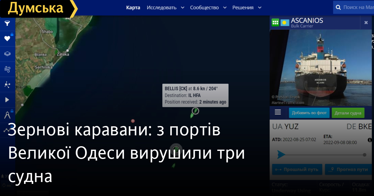 Одеський регіон продовжує приймати та відправляти зернові каравани. Вчора ввечері вийшов із одеського порту і залишився на ніч на якірній стоянці суховантажне судно ALI S під прапором Федерації Сент-Кітс і Невіс. Сьогодні о 7-й годині ранку з порту Південний вийшов балкер ASCANIOS під прапором Палау. Він прямує до німецького порту Brake. За годину одеський порт залишив BELLIS під прапором Островів Кука. Він іде до ізраїльського порту Хайфа. У порт Південний сьогодні має зайти суховантажне судно SILVER LADY під мальтійським прапором, а в одеський порт — ASH BALTIC під прапором Панами. Вчора ввечері кілька суден не поставили до причалів, і вони залишились ночувати на рейді. Сьогодні вдень їх почали заводити – до одеського порту зайшло суховантажне судно PEACE M під прапором Палау, на черзі ANASTASYA під прапором Палау та балкер SEAJOY під прапором Мальти. Усього за кілька днів сумарний експорт української агропромислової продукції, відправленої зерновим коридором, який почав працювати з 1 серпня, має становити 1 мільйон тон. СМЕРТЬ РОСІЙСЬКИМ ОКУПАНТАМ! Помітили помилку? Виділяйте слова з помилкою та натискайте control-enter |