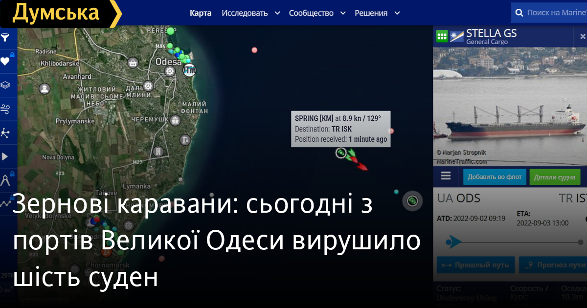 Зернові каравани: сьогодні з портів Великої Одеси вирушило шість суденКараван із шести суховантажів вирушив сьогодні від одеського узбережжя у бік чорноморських проток. Очолив ходу балкер STELLA GS, що відчалив від причалів одеського порту, за ним слідує CANGA STAR, танкери KATSUYAMA і MAVKA і суховантажне судно SPRING, що вийшли з порту Чорноморськ. Замикає караван балкер FULMAR S, який вийшов із Південного, який уже вдруге за час зернової угоди вивозить українську агропромислову продукцію з портів Великої Одеси. СМЕРТЬ РОСІЙСЬКИМ ОКУПАНТАМ! Помітили помилку? Виділяйте слова з помилкою та натискайте control-enter |