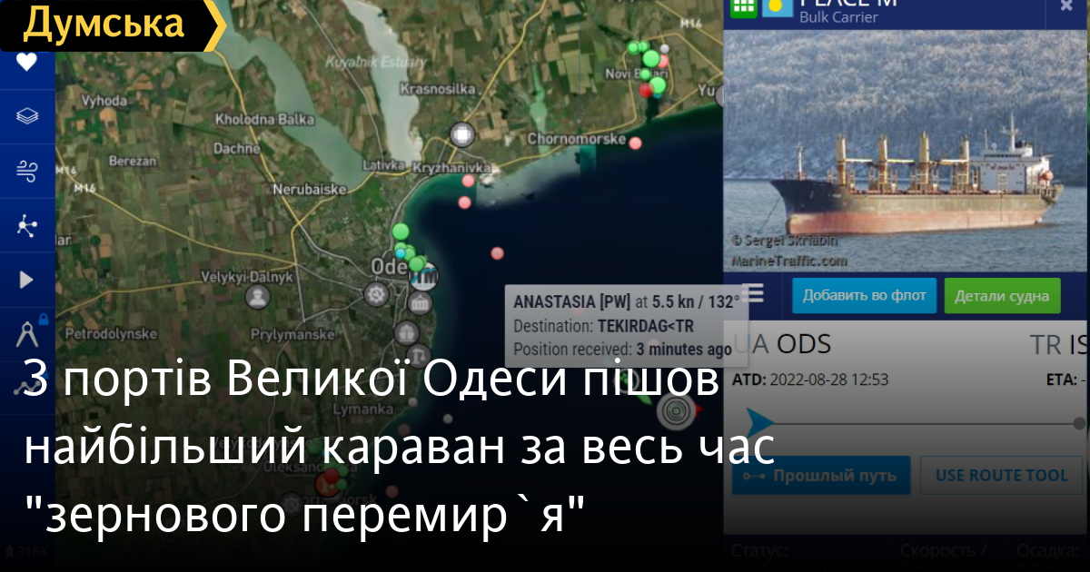 Учора трапилася ще одна подія – з портів Великої Одеси вийшов найбільший караван за цей місяць. Українське продовольство вирушило до замовників одразу на шести судах — балкерах SSI INVINCIBLE II, DS SOFIE BULKER та AEOLOS під прапором Маршаллових Островів, FPMC B 201 та MELINA під прапором Ліберії та SILVER LADY під прапором Мальти.