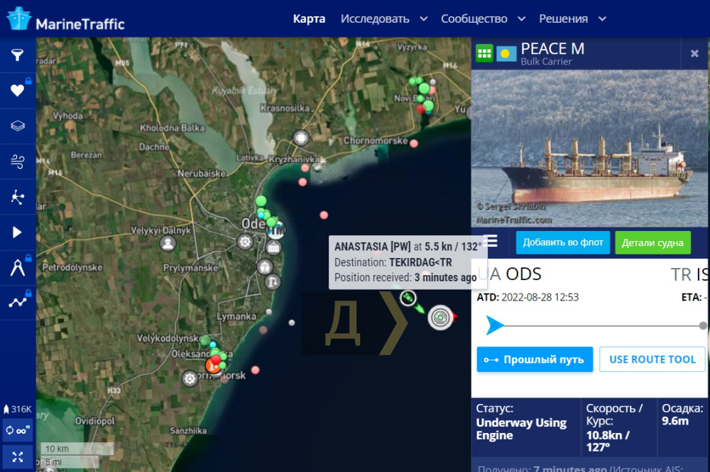 До речі, FULMAR S робить вже другу ходку до нас за час роботи зернових караванів. Він став першим суховантажем, яке зайшло 7 серпня в порт Чорноморськ.