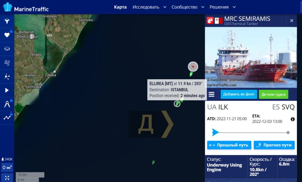 Суховантажі ELLIREA та AG VALOR вранці вийшли з порту Південний, а танкер MRC SEMIRAMIS із порту Чорноморськ.