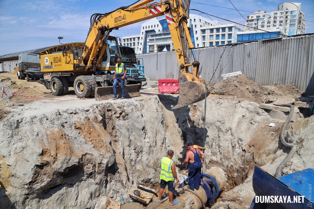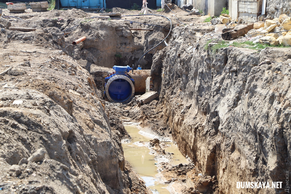 В «Инфоксводоканале» уточнили, что вырезанный рядом большой кусок магистрального трубопровода не имеет отношения к нынешней ситуации. Его поменяют потом, рядом уже ждет своего часа новая пластиковая 50-метровая труба диаметром 900 мм.