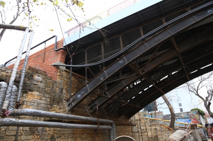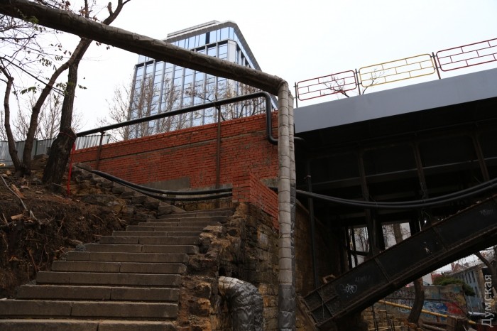Старинная аутентичная арка успешно инсталлирована в современные конструкции. Смущает только красно-желтый заборчик, который поставили по всему периметру, но видимо, это новация носит временный характер.