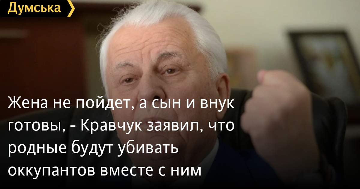 «Жена не пойдет, потому что она не умеет держать в руках винтовку, а сын и внук сказали, что это правильная позиция любого, кто считает себя патриотом, они пойдут со мной защищать свою землю», — отметил Леонид Кравчук.