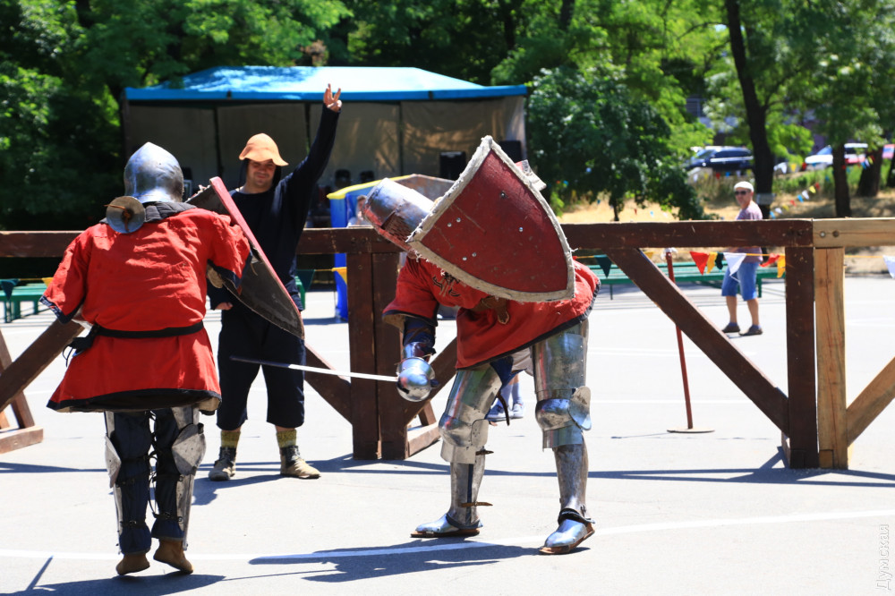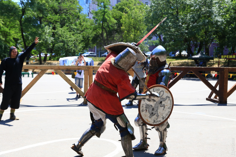Как передает корреспондент «Думской», сегодняшний рыцарский турнир можно назвать международным — из Молдовы прибыли стразу три команды. Ожидались также гости из Израиля (возможно, они доберутся до Одессы позже).