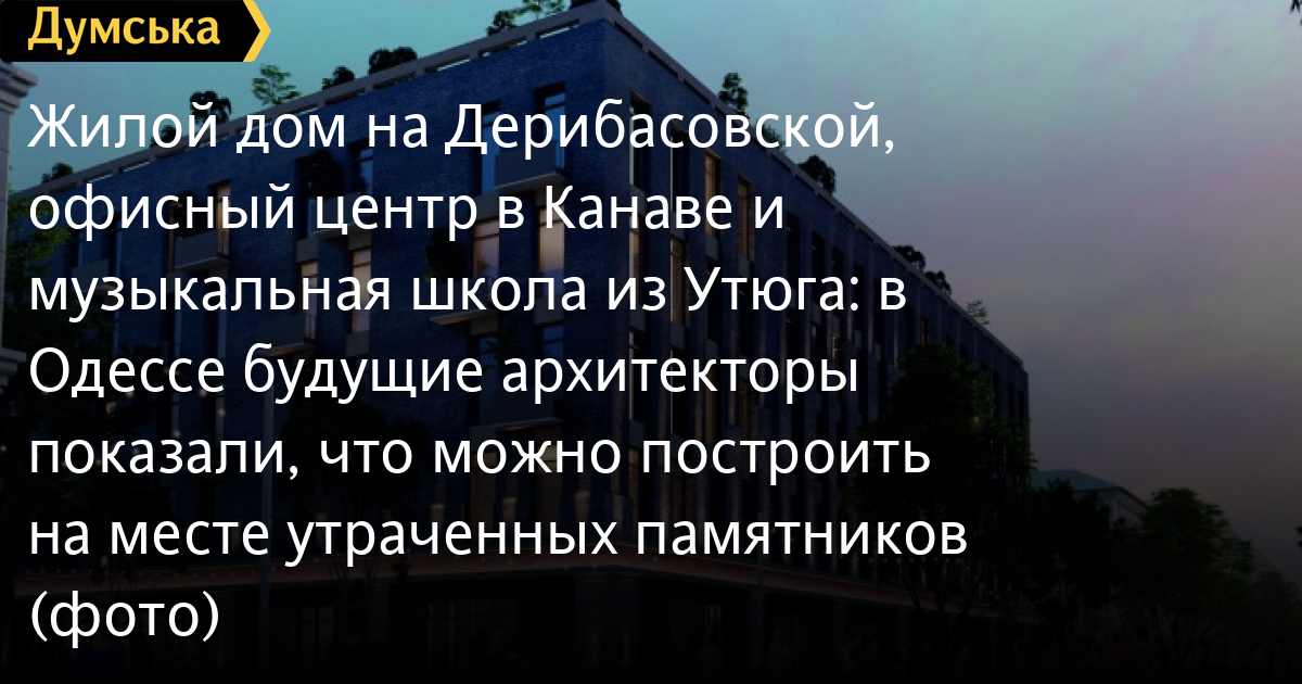 Самые интересные работы опубликовал преподаватель кафедры градостроительства ОГАСА и член общественной организации «Ассоциация архитекторов Одессы» Андрей Черненко. По словам архитектора, ответ на извечный вопрос, как и что строить в историческом центре, был дан давно в рамках Афинской и Венецианской хартий (международных документов, закрепляющих профессиональные стандарты в области охраны и реставрации памятников архитектуры).