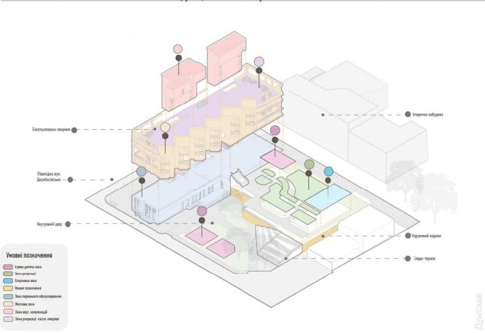 Интересный проект реанимации многострадального доходного дома Коколи на Мечникова, 90, получившего у одесситов прозвище Утюг, предложила студентка Анастасия Лендюк.