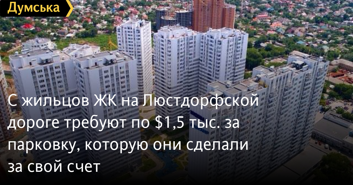 «В той бумажке есть номера телефонов. Когда мы туда позвонили, нам сказали, что депутаты выделили это место (гостевую парковку) под платную стоянку. И чтобы ставить здесь авто, нужно вступить в кооператив, заплатив $1500! Да-да, именно полторы тысячи долларов США. Жители комплекса категорически против создания шлагбаумов и платной стоянки на гостевой парковке», — говорится в обращении жильцов к городским властям.