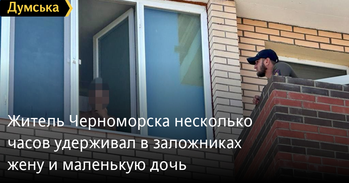 Житель Черноморска несколько часов удерживал в заложниках жену и маленькую дочьЖителя Черноморска, который взял в заложники свою супругу и малолетнего ребенка, задержали правоохранители. Как рассказали в полиции, сообщение о том, что в одной из квартир на четвертом этаже женщина зовет на помощь, поступило примерно в 12 часов 30 августа. Прибывшие на место правоохранители установили, что 29-летний мужчина удерживает дома жену и дочь, угрожая нанести телесные повреждения. Полицейские начали переговоры с мужчиной. Спустя несколько часов в пресс-службе ГУНП сообщили, что злоумышленник задержан, а заложники освобождены. СМЕРТЬ РОССИЙСКИМ ОККУПАНТАМ! Заметили ошибку? Выделяйте слова с ошибкой и нажимайте control-enter Новости по этой теме: 29 июля 2025: В Усатово Одесской области произошла перестрелка: полиция работает на месте (видео, обновлено) 28 июля 2025: Пьяный на «Ягуаре» или гипертоник? Уволенный топ-чиновник одесской полиции хочет вернуться на службу 19 июня 2025: Девочку, которую искали сотни одесситов, нашли убитой: полиция работает с мужчиной, вероятно, причастным к гибели 27 мая 2025: Увели гектар у университета: на Одесчине осудили земельных аферистов, но без посадки и Хвоста |