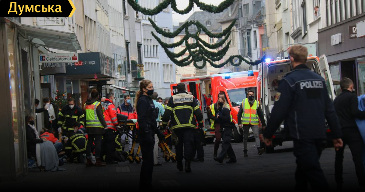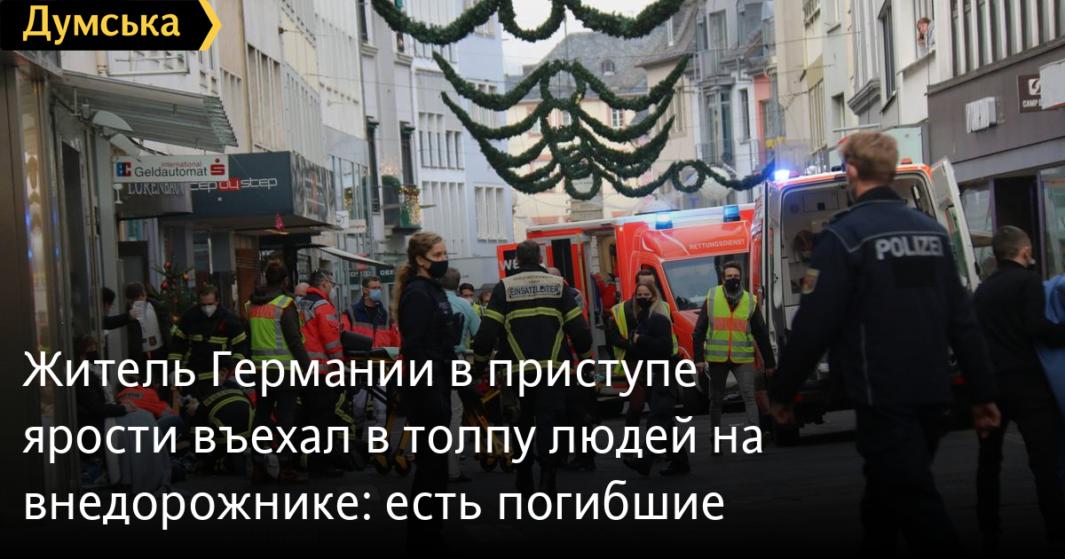 В немецком городе Трир водитель серого Range Rover проехался по людной улице на скорости около 70 км/ч и сбил группу людей.