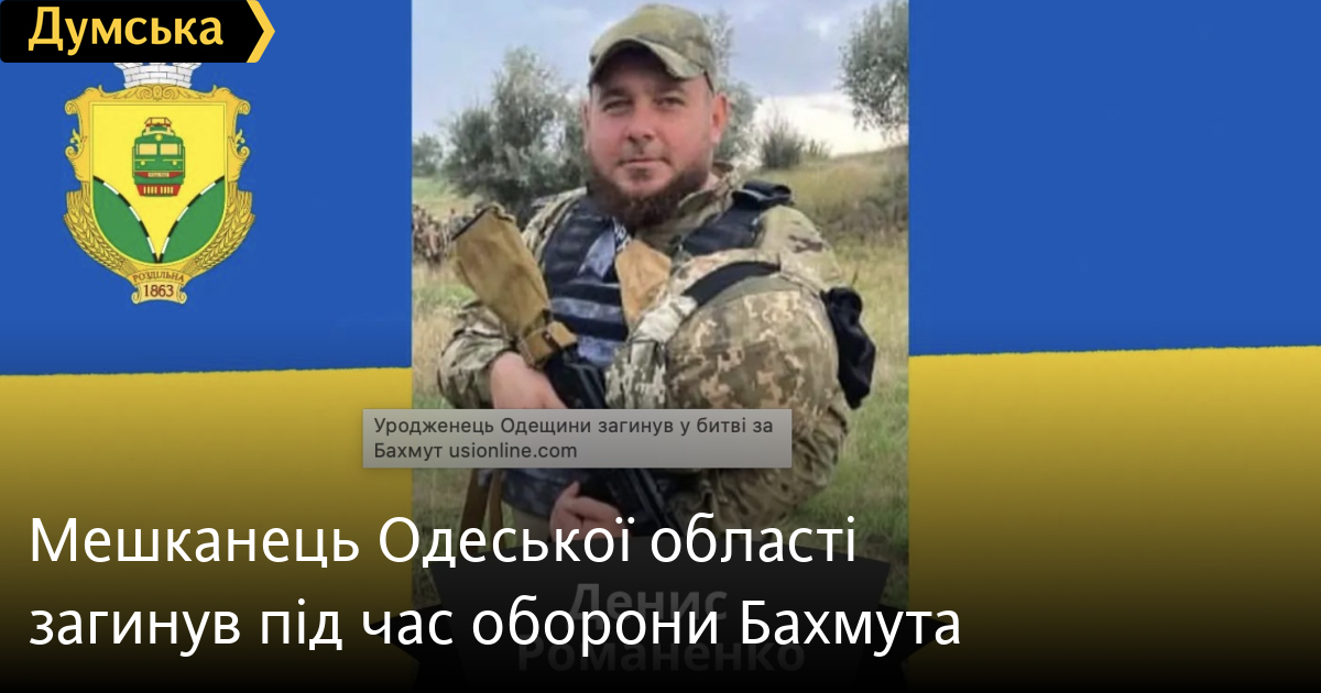 Уродженець села Кошари на території Роздільнянської громади, старший солдат Денис Романенко склав голову, захищаючи Бахмут.