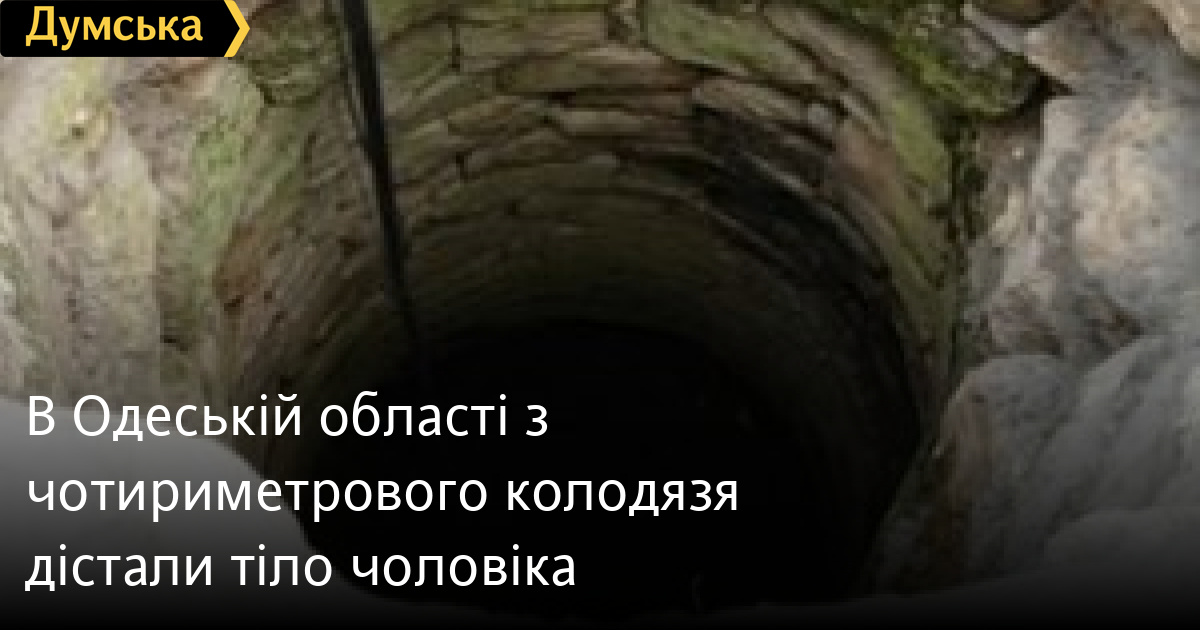В Одеській області з чотириметрового колодязя дістали тіло чоловікаТіло чоловіка дістали з чотириметрового колодязя в Білгороді-Дністровському Одеської області. Загиблий — 47-річний чоловік, повідомили в обласному управлінні ДСНС. Тіло з колодязя витягли рятувальники. Причину смерті встановить експертиза. СМЕРТЬ РОСІЙСЬКИМ ОКУПАНТАМ! Помітили помилку? Виділяйте слова з помилкою та натискайте control-enter |