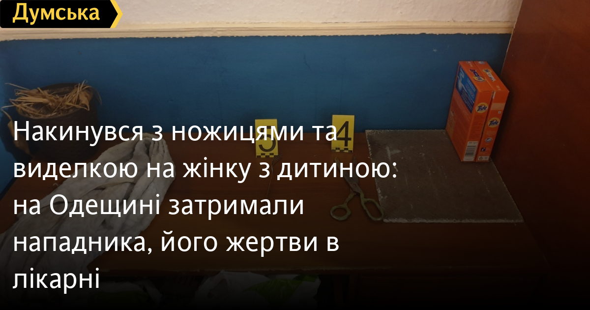 Накинувся з ножицями та виделкою на жінку з дитиною: на Одещині затримали нападника, його жертви в лікарніП'яний 22-річний житель Подільського району намагався зарізати свою односельчанку та її 12-річну племінницю за допомогою ножиць і виделки. Як повідомляє пресслужба обласної поліції, хлопець увірвався в їхню оселю і буквально пошматував 44-річну жінку та підлітка, причому без будь-яких пояснень. Зупинити неадеквата вдалося сусідам, які прибігли на крики потерпілих. Вони-то і знешкодили нападника ще до приїзду поліції. Наразі постраждалі перебувають у лікарні: у дівчинки діагностували проникаюче поранення грудної клітки та внутрішніх органів, травматичний шок другого ступеня, у її тітки — колото-різані рани різних частин тіла. Нападника перевірять на осудність. Фігуранту повідомили про підозру в замаху на умисне вбивство двох осіб, серед яких є малолітній. Суд відправив його в СІЗО. Чоловікові загрожує довічний термін. СМЕРТЬ РОСІЙСЬКИМ ОКУПАНТАМ! Помітили помилку? Виділяйте слова з помилкою та натискайте control-enter |