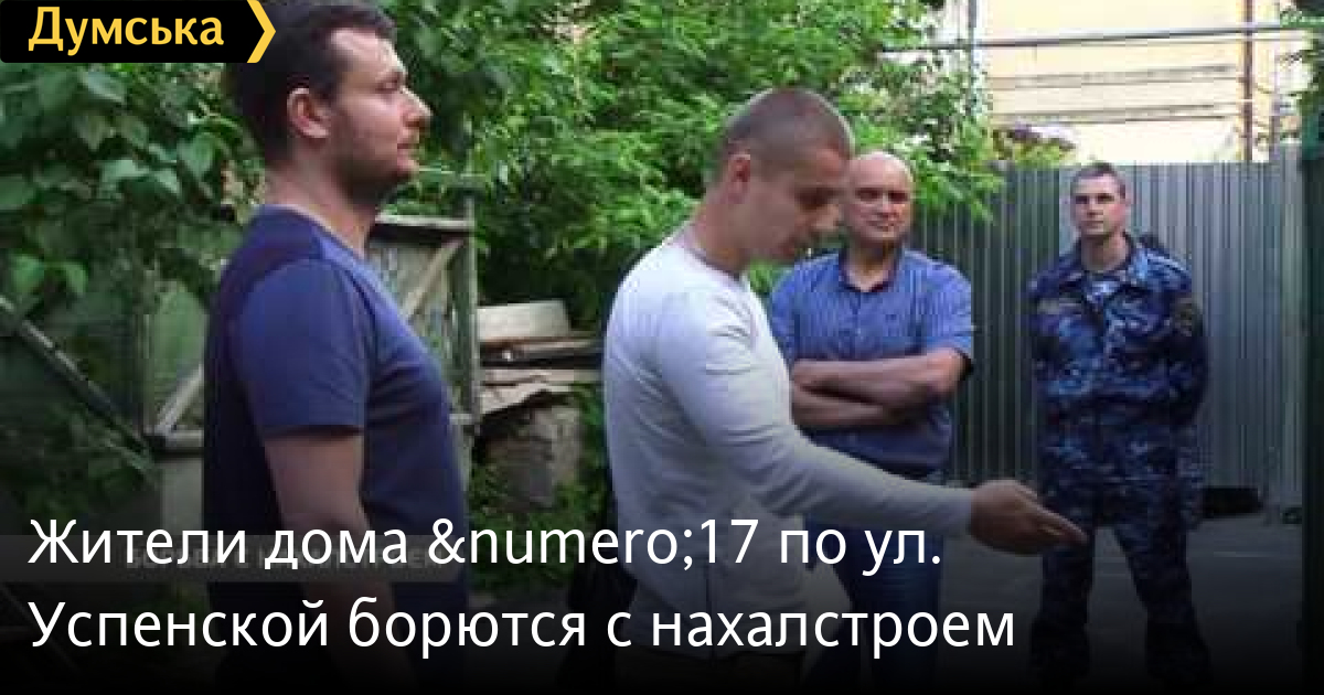 Думская ТВ продолжает следить за одесскими нахалстроями. Напомню, в течении 2-х лет жителей дома 17 по улице Успенской пытаются остановить незаконную стройку: предприниматель захватил часть придомовой территории, оградил ее забором и под видом реконструкции перекрыл выход на чердак. СМЕРТЬ РОССИЙСКИМ ОККУПАНТАМ! Заметили ошибку? Выделяйте слова с ошибкой и нажимайте control-enter Думская ТВ. Сюжеты: