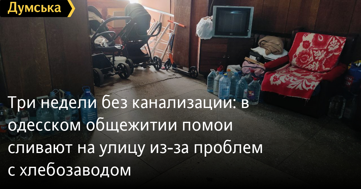 Три тижні без каналізації: в одеському гуртожитку помиї зливають на вулицю через проблеми з хлібозаводомШістдесят сімей в одеському гуртожитку за адресою вул. Євгенія Танцюри, 14а майже три тижні залишаються без каналізації і, відповідно, без води. Мешканці звинувачують у цьому керівництво розташованого поруч Хлібозаводу №4, на території якого, за їхніми словами, проходить ділянка колектора. Керівництво підприємства, в свою чергу, заявляє, що відповідальності за інженерні мережі не несе. Кореспондент «Думської» розбирався в ситуації. Як стверджують сусіди, конфлікт із заводом триває не перший рік. Гуртожиток, побудований ще за радянських часів, раніше належав компанії «Одеський Каравай». Після того як завод був визнаний банкрутом, а активи відійшли новому підприємству, будівля продовжувала користуватися заводськими комунікаціями (водою, опаленням і водовідведенням). «Ми створили громадську організацію за типом ОСББ і взяли на себе управління будинком, — розповіла керівниця ініціативної групи Надія. — За власні кошти зробили проєкт і підключили воду безпосередньо до міської магістралі, але на каналізацію не вистачило ресурсів. Частину приміщень на першому поверсі у нас займав хлібозавод, при цьому він не платив за комунальні послуги, а платили мешканці. Коли ми нарешті вигнали їх з першого поверху, почалися погрози: мовляв, ви дострибаєтеся, каналізація все одно через нас проходить». За її словами, перша аварія сталася три тижні тому. Викликана за рахунок мешканців аварійна служба «Інфоксводоканалу» зафіксувала, що засмічення знаходиться на території хлібозаводу. Однак співробітників служби туди не пустили. Одесити кажуть, що лише після втручання представників районної адміністрації техніка все ж потрапила до місця. Але засмічення виявилося занадто серйозним – за оцінкою водоканалу, близько 80 метрів труби були забиті залишками борошна. Кілька днів тому фахівці повернулися і все-таки прочистили каналізацію, працюючи в кілька етапів. У підсумку вода в кранах у одеситів нарешті з'явилася, але зливати її, як і раніше, нікуди. «Ми після цього включили воду, але наші колодязі повні, їх теж треба тепер чистити. Чекаємо, поки в «Інфокс» порахують вартість, після чого машина приїде і до нас, — зазначає Надія. — Ми зі свого боку вже зробили все, що могли. Воду собі провели, рахунки оплачуємо. Ми три тижні живемо в таких умовах — тягаємо відра з бюветів, виливаємо помиї за будинком. У нас маленькі діти, люди похилого віку, переселенці, вдови загиблих військових. І ніхто не може нам допомогти». Зазначимо, що офіційно гуртожиток перейшов у власність одеської громади тільки цього року, 24 липня (рішення виконкому №798), і тепер перебуває в управлінні Хаджибейської районної адміністрації. У свою чергу, директор хлібозаводу Віталій Добровольський розповів, що не вважає себе відповідальним за проблеми гуртожитку. «Гуртожиток вже давно передано місту, і ми ніякого відношення до нього не маємо, — заявив Добровольський. — Колись завод його побудував, але давно вже не обслуговує. Так, каналізація зливається через нашу територію, але ніхто її не засмічував. «Інфокс» приїхав, ми його відразу пустили, але вони приїхали з дротом, а треба було щось потужніше. Тепер кажуть, що я їм зобов'язаний це робити. Вибачте, але я сто тонн води на день використ