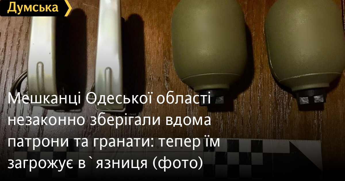 Мешканці Одеської області незаконно зберігали вдома патрони та гранати: тепер їм загрожує в`язницяДвох жителів Одеської області, які незаконно зберігали вдома боєприпаси, викрили правоохоронці. Як повідомили у пресслужбі поліції регіону, ізмаїльчанин тримав удома сорок набоїв до автомата Калашникова та ручного кулемета, виготовлені промисловим способом і придатні до стрільби. Отримавши інформацію про це, правоохоронці прийшли з обшуком і знайшли заборонені предмети. Чоловік заявив, що знайшов патрони і зберігав їх як сувеніри. Жителя Роздільнянського району поліцейські викрили, коли приїхали на виклик про домашнє насильство. Чоловік погрожував жінці фізичною розправою, на нього склали адмінпротокол, а під час огляду житла знайшли в сараї два корпуси ручних осколкових гранат іноземного виробництва та два запали до них. Правопорушник теж пояснив, що зберігав їх як сувеніри. Щодо фігурантів розпочали кримінальні провадження за ознаками ч. 1 ст. 263 Кримінального кодексу України. Ізмаїльчанину вже повідомили про підозру. Остаточну правову оцінку діям другого чоловіка дадуть після проведення експертизи. Санкція статті передбачає покарання у вигляді позбавлення волі на строк від трьох до семи років. Помітили помилку? Виділяйте слова з помилкою та натискайте control-enter Новини по цій темі: 29 липня 2025: В Усатово Одеської області сталася перестрілка: поліція працює на місці (відео, оновлено) 28 липня 2025: П'яний на "Ягуарі" або гіпертонік? Звільнений топ-посадовець одеської поліції хоче повернутися на службу 19 червня 2025: Дівчинку, яку шукали сотні одеситів, знайшли вбитою: поліція працює з чоловіком, ймовірно причетним до загибелі 27 травня 2025: Увели гектар в університету: на Одещині засудили земельних аферистів, але без посадки і Хвоста |