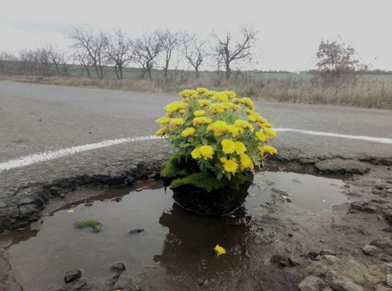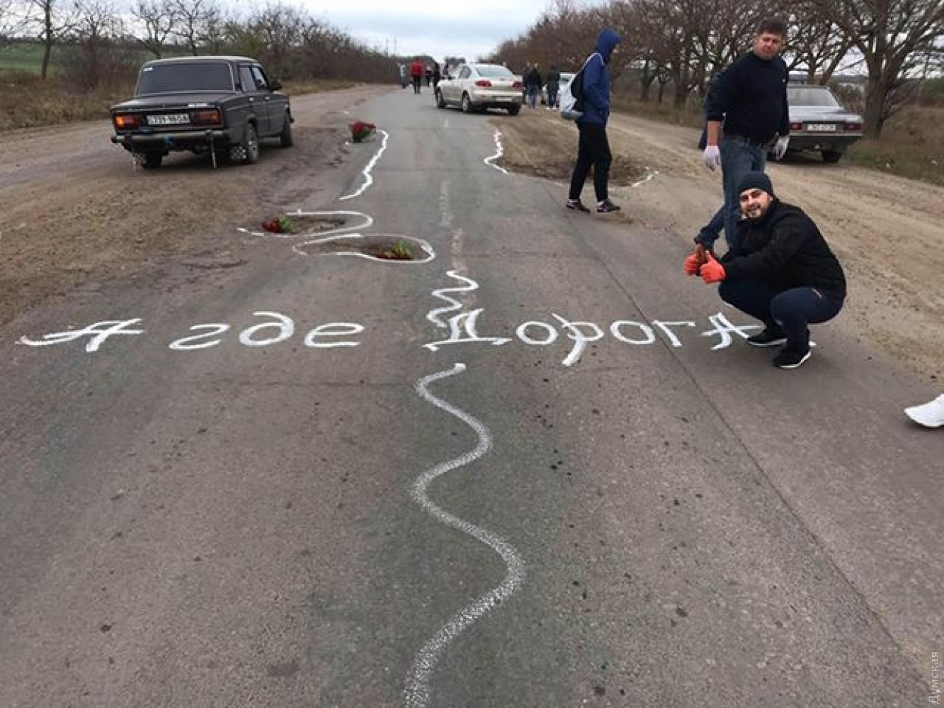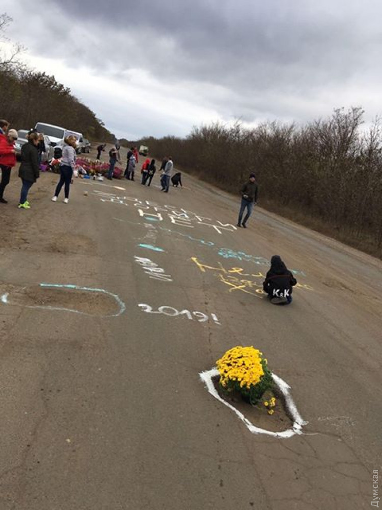 Акция протеста: жители Одесской области высадили цветы в ямы на неотремонтированной трассеМирная акция под названием «Каждой яме по цветку» прошла в воскресенье, 3 ноября, на автодороге Т16-19 Беляевка-Широкая Балка. Участники акции высадили цветы в ямы прямо на дороге на участке от Теплодара до Широкой Балки. Как сообщил «Думской» организатор акции Ян Синтюк, в высадке цветов приняли участие более ста человек. По его словам, водители и пассажиры проезжавших мимо машин выражали свою поддержку участникам акции, а некоторые даже присоединялись к ним. Фото Яна Синтюка СМЕРТЬ РОСІЙСЬКИМ ОКУПАНТАМ! Помітили помилку? Виділяйте слова з помилкою та натискайте control-enter |