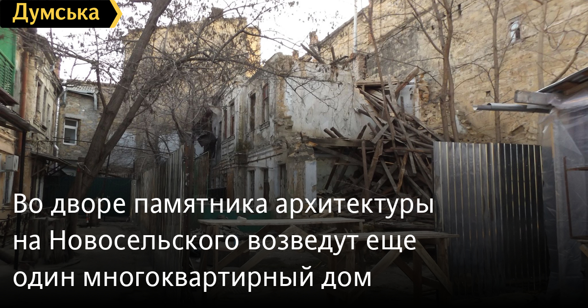 Во дворе памятника архитектуры на Новосельского возведут еще один многоквартирный домЖители 39-го и 41-го номеров по Новосельского бьют тревогу. Начавшееся во дворе строительство, по их мнению, может негативно сказаться на обоих дореволюционных зданиях, одно из которых — памятник архитектуры местного значения. Согласно официальным документам, разрешение на реконструкцию ветхого здания без изменения геометрических размеров фундаментов в плане (так делают, когда нет документов на землю) получило скандально известное ООО АПК Менеджмент Инвест», устроившее блэкаут учащимся специализированной школы №90 возле Старобазарного сквера. Учредитель ООО АПК Менеджмент Инвест» — гражданин Израиля Григорий Шапиро, директор — Анастасия Фролова. Фирма связана с небезызвестным Павлом Шмуклером, который изуродовал мансардами дом Потоцкого на Приморском бульваре и дворец Камо на Тираспольской. Любопытно, что квартиры в будущем доме на Новосельского уже вовсю продают на специализированных сайтах. Цены стартуют от 950 долларов за квадратный метр. На предварительной визуализации новострой изображен трехэтажным, но в итоге там может вырасти и высотка. СМЕРТЬ РОССИЙСКИМ ОККУПАНТАМ! Заметили ошибку? Выделяйте слова с ошибкой и нажимайте control-enter Новости по этой теме: 26 июня 2025: Сомнительный подарок: памятник архитектуры на Приморском бульваре пытаются вернуть одесской громаде 17 августа 2025: Продают мерч в зале Костанди, прячут Древний Египет в подвалах и выставляются в Германии: как выживают одесские музеи (часть первая) 27 февраля 2025: Компания из группы Коломойского готовится к строительству торгового центра возле Дерибасовской 28 ноября 2024: Дом с "костылями": памятник архитектуры в одесском переулке Ройтбурда ждут противоаварийные работы за 20 млн грн (фото) |
