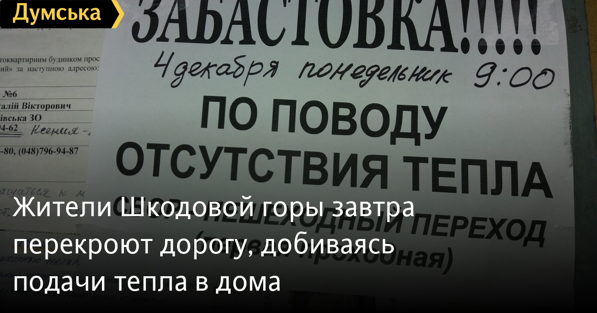 В связи с отсутствием обещанного отопления в микрорайоне Шкодова гора, что возле Одесского НПЗ, местные жители собираются на акцию протеста и будут завтра перекрывать дорогу, по которой фуры заезжают на Евротерминал.