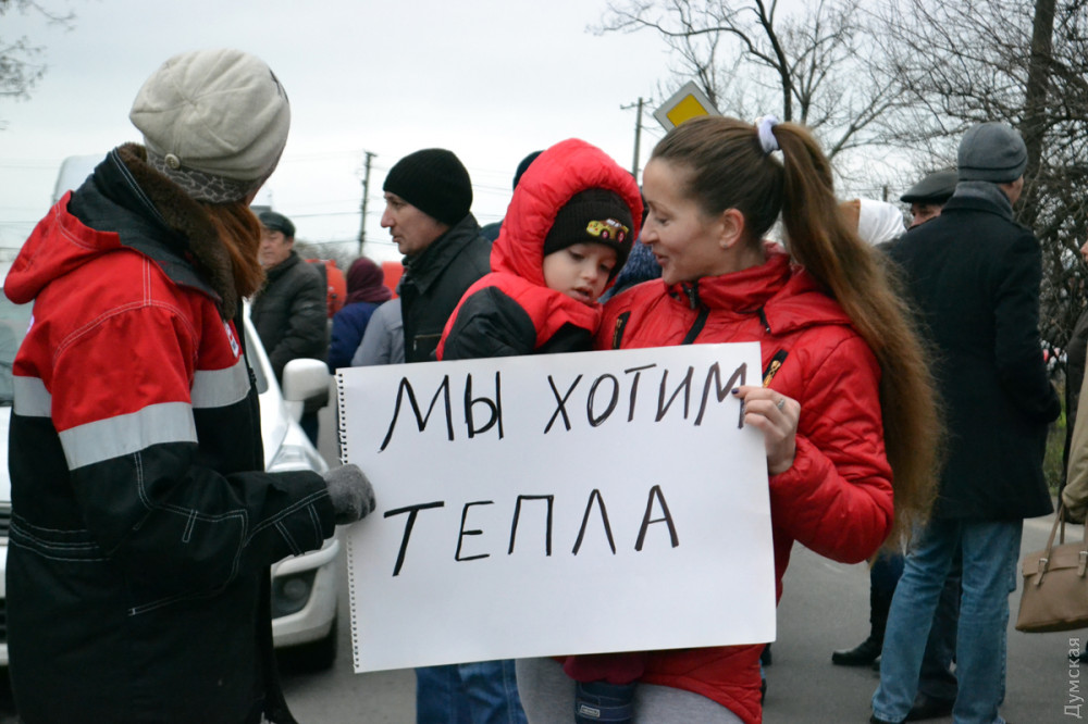 Несмотря на то, что на календаре уже 4-е декабря, микрорайон возле Одесского НПЗ, где живут порядка 1300 человек, все еще остается без отопления. Холод, сырость в квартирах и отсутствие электроэнергии по вечерам вынудили местных жителей перекрыть улицу, по которой грузовики заезжают на «Евротерминал».