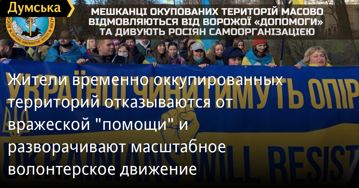 В частности, на оккупированной территории Харьковской области разворачивается широкомасштабное волонтерское движение. Люди разносят по домам продукты и лекарства для малообеспеченных земляков. Волонтеры самостоятельно собирают деньги и принципиально отказываются от российской «помощи».