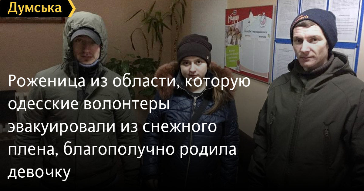 Об этом редакции «Думской» сообщили волонтеры «Автомайдана», которые два дня назад по просьбе главврача центра экстренной медицины пробились через снежные заносы и привезли Диану в Одессу. Другой возможности доставить роженицу в больницу на тот момент не было.
