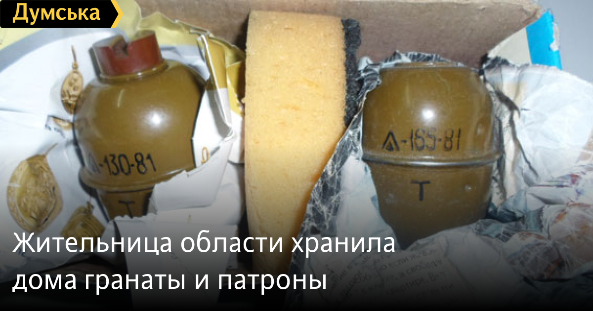 Во время санкционированного обыска в доме у 50-летней жительницы Измаила сотрудники полиции изъяли две гранаты с запалом РГД-5 и патрон калибра 5,56 мм. Об этом сообщили в пресс-службе ГУНП. Данный факт внесен в Единый реестр досудебных расследований. Начато уголовное производство по признакам части 1 статьи 263 (незаконное обращение с оружием, боеприпасами или взрывчатыми веществами) Уголовного кодекса Украины. СМЕРТЬ РОССИЙСКИМ ОККУПАНТАМ! Заметили ошибку? Выделяйте слова с ошибкой и нажимайте control-enter |