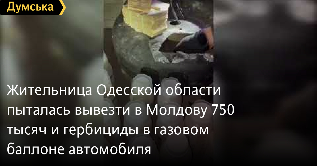 Мешканка Одещини намагалася вивезти до Молдови 750 тисяч та гербіциди в газовому балоні автомобіля750 тисяч гривень і понад тридцять пластикових банок із гербіцидами намагалася незаконно вивезти до Молдови мешканка Одеської області. Як повідомили в Держприкордонслужбі, прикордонники Ізмаїльського загону в поромному пункті «Орлівка» виявили значну суму грошей і хімічні препарати для боротьби з небажаною рослинністю в газовому балоні автомобіля «Хонда», який належав 30-річній громадянці України, що намагалася покинути країну. «Під час перевірки увагу привернув газовий балон, змонтований усередині багажного відділення в ніші для запасного колеса. Під час демонтажу прикордонники помітили, що знизу балон був частково заклеєний ізоляційною плівкою. Виявилося, що там була ретельно облаштована схованка, з якої витягли 750 тисяч гривень і 34 пластикові банки з гербіцидами. Наразі стосовно водія складено протокол про порушення митних правил, гроші та речовини вилучено до рішення суду», — йдеться в повідомленні. СМЕРТЬ РОСІЙСЬКИМ ОКУПАНТАМ! Помітили помилку? Виділяйте слова з помилкою та натискайте control-enter |