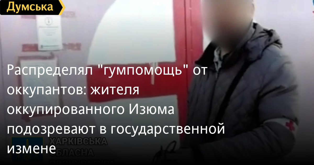 Как сообщает Офис генпрокурора, по данным следствия, во время временной оккупации города Изюм местный житель добровольно занял должность так называемого «начальника медицинской службы – службы медикаментов» в незаконно созданной оккупационной администрации государства-агрессора. Он занимался учетом и распределением лекарственных средств в качестве «гуманитарной помощи» от оккупантов.