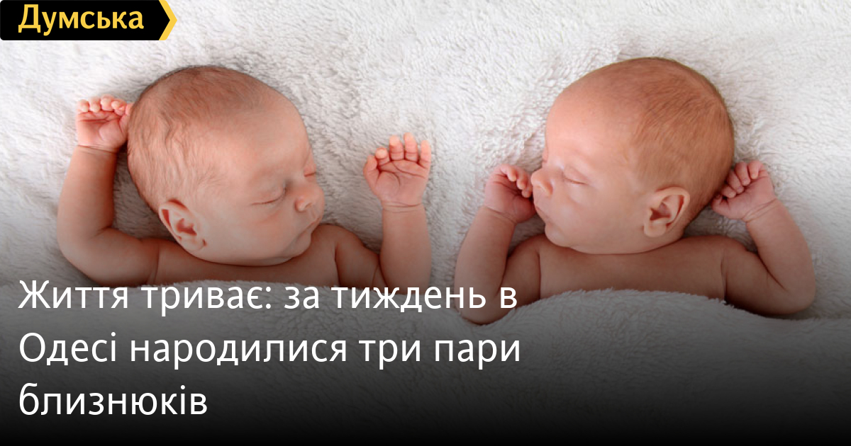 Життя триває: за тиждень в Одесі народилися три пари близнюків122 дитини, зокрема три пари близнюків, народилися в міських пологових будинках Одеси минулого тижня. Про це повідомив муніципальний департамент охорони здоров'я. Серед новонароджених — 62 хлопчики і 60 дівчаток. У департаменті також зазначили, що всі міські пологові будинки в повному обсязі забезпечені електроенергією, водою і теплом. Медперсонал перебуває на робочих місцях. Помітили помилку? Виділяйте слова з помилкою та натискайте control-enter |