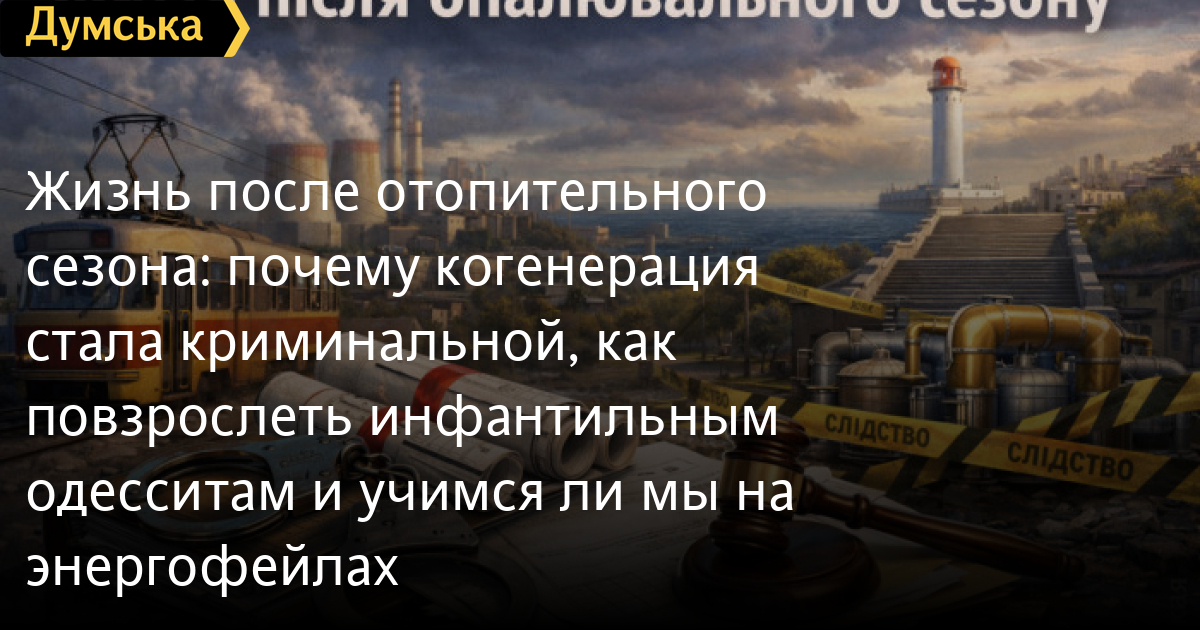 Жизнь после отопительного сезона: почему когенерация стала криминальной, как повзрослеть инфантильным одесситам и учимся ли мы на энергофейлахОтопительный сезон в Одессе подходит к концу, но ключевой вопрос — не когда остынут батареи. Важнее, что город получит на выходе: освободятся ли мощности, удастся ли запустить электротранспорт. И главное — есть ли у власти в принципе общее видение развития этой отрасли? С долгосрочным планированием у нашей мэрии вообще-то туго. Оказалось, что «Стратегия развития Одессы», за которую недавно голосовали депутаты, а мы раскритиковали в пух и прах, никакая не стратегия. А только первый шаг к ее разработке. Однако увидев «заинтересованность» к этой работе наших городских «стратегов», деньги Организация развития ООН больше давать не хочет. Краткосрочная перспектива — тоже не наш конек. Проекты когенерации сильно буксуют, вдобавок — изъятие документов в рамках уголовных производств. В ОЖИДАНИИ ФИНИША ОТОПИТЕЛЬНОГО СЕЗОНА Отопление отключат, когда среднесуточная температура три дня подряд будет выше +8 градусов. При этом многие одесситы нарекают, что днем в квартирах просто жарко — приходится открывать окна. И тут возникает вопрос — можно ли экономить в такое теплое время дня? Теоретически да - просто опускать температуру носителя днем. Однако в реальности это маловероятно — слишком велики потери по пути. При этом один наш источник в профильном КП уверяет, что некоторые котельни днем и вовсе отключают. Хотя это технически неправильно и неэкономно: на разогрев системы вечером в итоге потратят больше газа и энергии, чем на поддержание температуры весь день. Официально в мэрии эту информацию опровергли. Более того, «Нафтогаз» пригрозил всем коммунальным теплоэнерго, что досрочно завершит подачу газа из-за больших долгов. Досрочно — это 28 марта. Планово было бы 1 апреля. По информации «Думской», у родного «Теплоснабжения города Одессы» долгов нет вообще, а наша ТЭЦ - сама «дочка» «Нафтогаза», а значит без газа на следующий сезон никто не останется. Так что не поддаемся панике. СЕЗОН 25/56 ЗАВЕРШЕН. ГОТОВИМСЯ К ЗИМЕ 2026-27 Начнем с цифр. После окончания отопительного сезона высвободятся мощности, которое используют котельные, насосные станции, центральные тепло пункты и вспомогательная инфраструктура. Всего около 8 МВт. И хотя в мэрии и отрицают связь между окончанием отопительного сезона и запуска трамваем, мы ее ясно видим. Отметим, что 8 МВт, для города-миллионника не так уже и много. Это меньше 5% того, что потребляет Одесса в условиях блэкаута. До введения ограничений — меньше 1 %. Эти мегаватты ДТЭК распределит по своему усмотрению. Возможно часть для населения, возможно для электротранспорта, рассказывает секретарь депутатской комиссии горсовета по ЖКХ Алексей Асауленко. Теперь главное — готовится к следующей зиме. «В подготовке к сезону нет ничего фантастического: проблемные участки заменить, а не залатать. На дома солнечные батареи поставить, но для этого должны заработать дополнительные государственные и городские программы софинансирования. Как сообщили мне руководители «Теплоснабжения города Одессы», летом должны установить и подсоединить все имеющиеся у города когенерационные установки», — говорит Асауленко. И на этом позитивные новости заканчиваются. О том, что наши сети — дыря