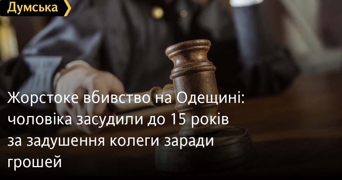 Жорстоке вбивство на Одещині: чоловіка засудили до 15 років за задушення колеги заради грошей