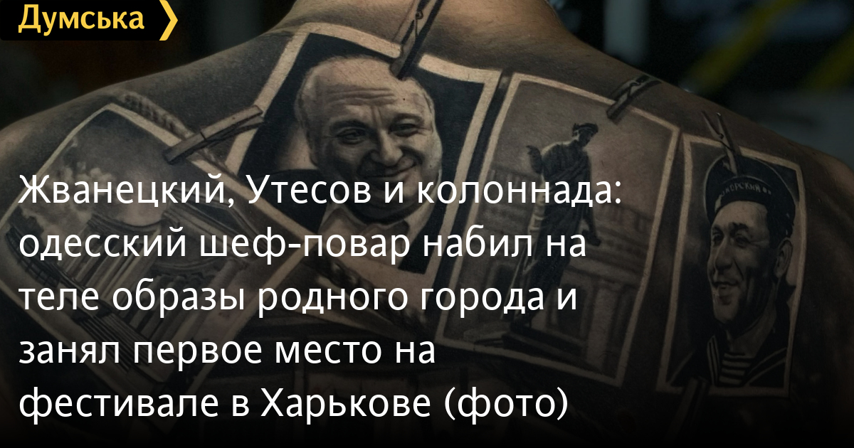 Одессит Евгений Ерошевский, шеф-повар ресторана «Реберня на Дерибасовской», пошел дальше и сам стал полотном для картины. С недавних пор всю его спину украшает татуировка — колоритный одесский дворик, остывающая с дороги «Чайка» и фотографии знаменитостей и достопримечательностей, сохнущие на веревках вместо привычного белья.