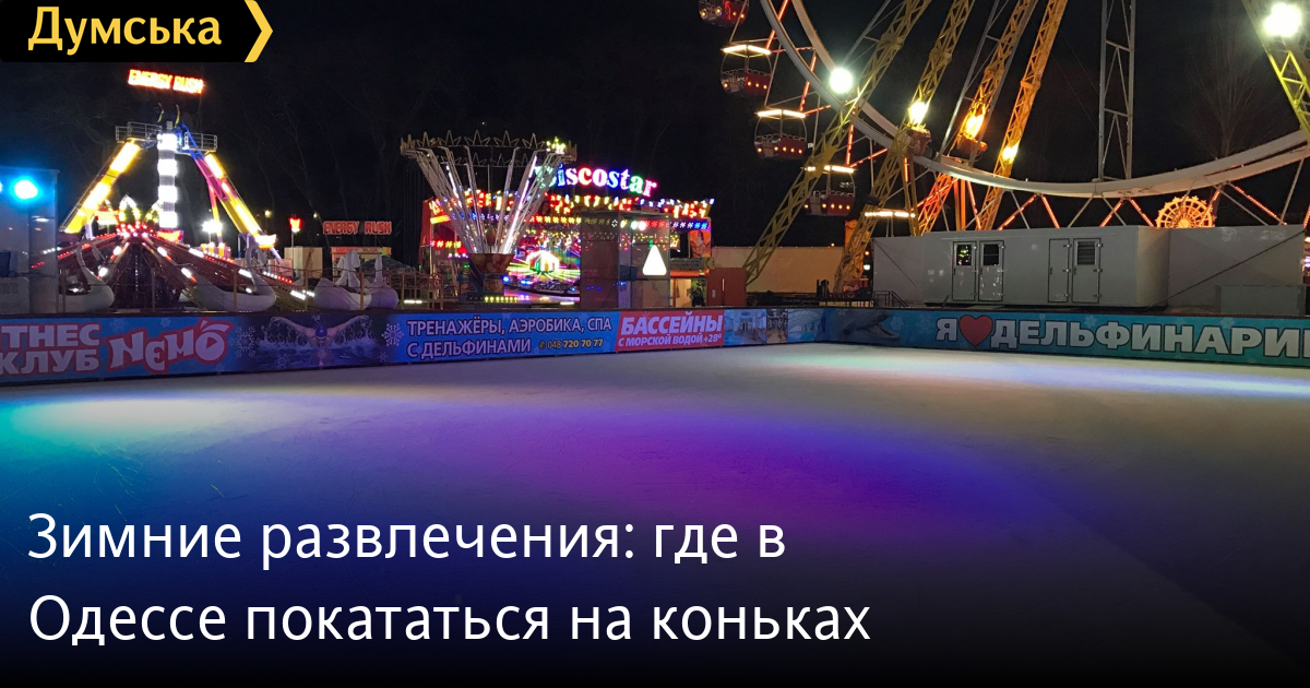 Это первый появившийся в Одессе открытый ледовый каток. Здесь есть медпункт, гардероб и прокат спортивного снаряжение.