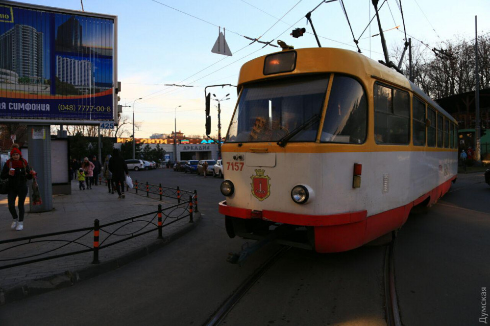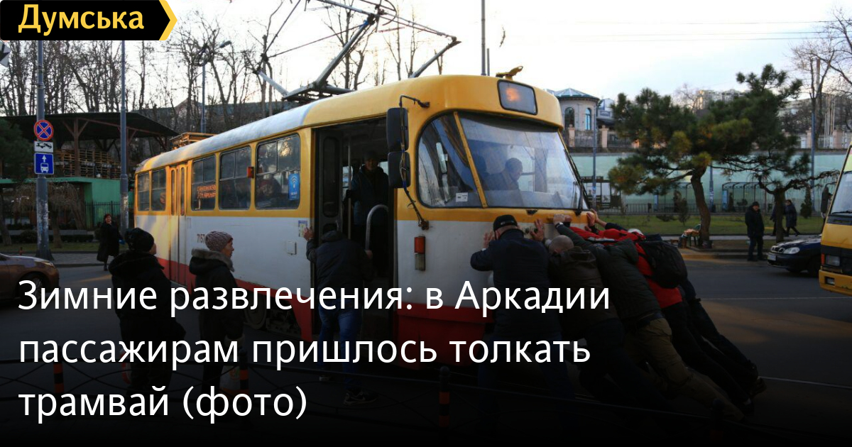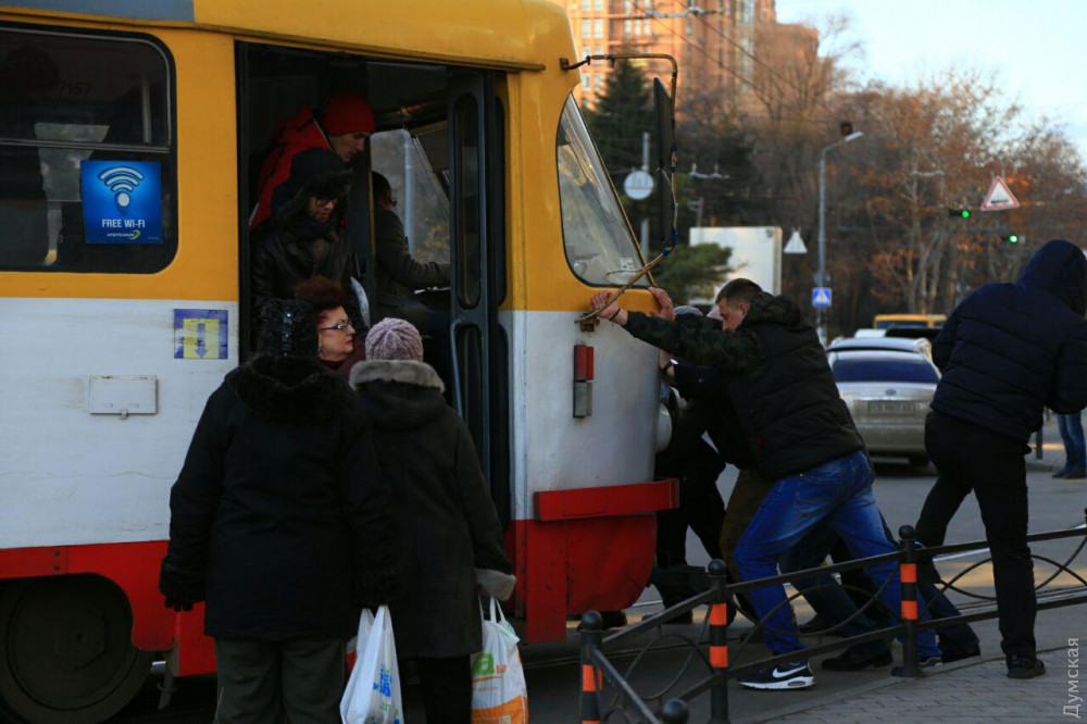 Пассажирам одесского трамвая, следовавшего по маршруту №5, пришлось толкать вагон на разворотном кольце в Аркадии.