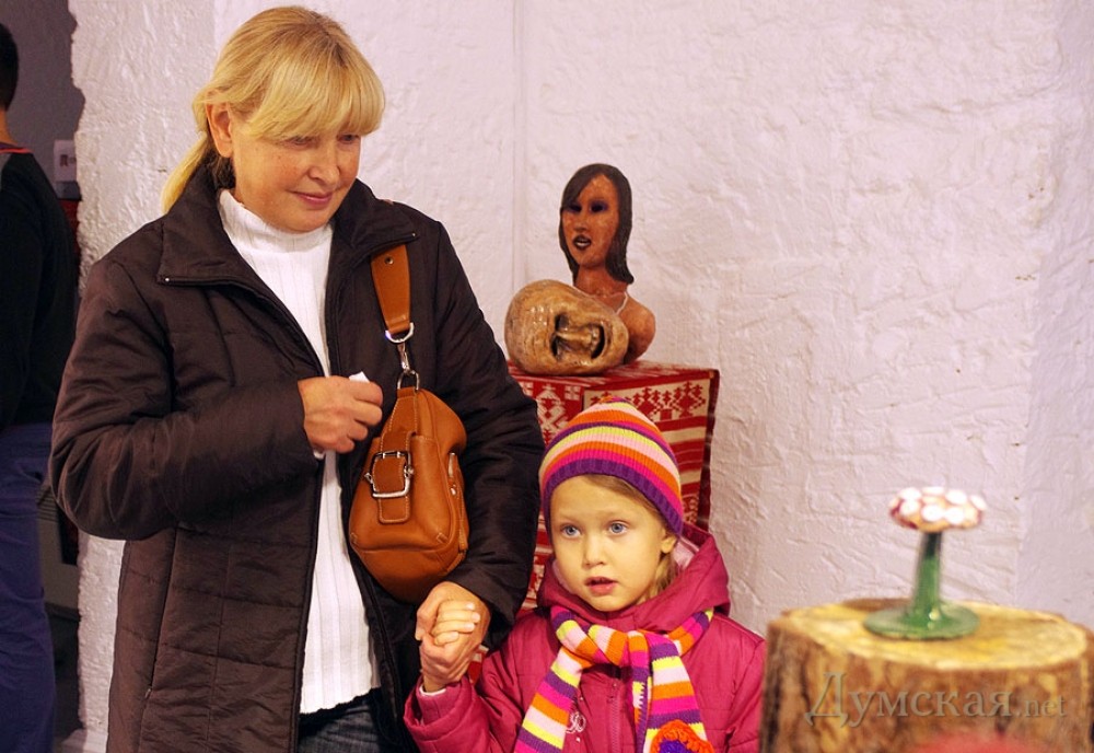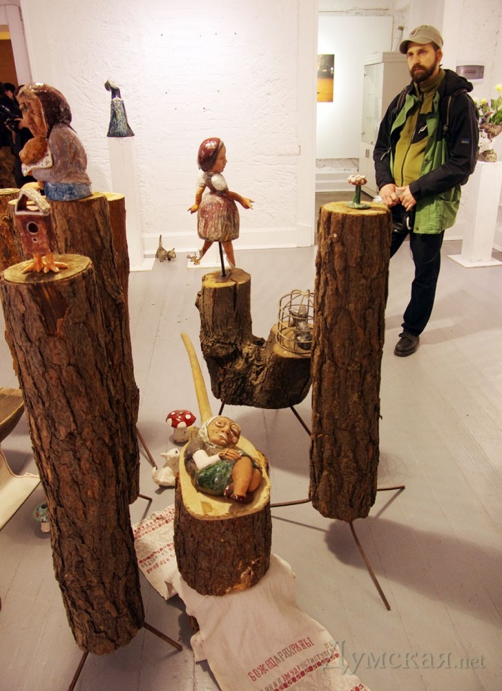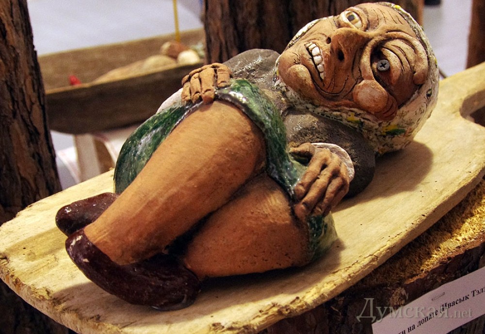 Ужасы Городка «Пати на лопате» и зрелая Красная Шапочка. Одесситам показали страшные керамические сказки«Думская» побывала на очередном вернисаже в галерее «ХудПромо» (Жуковского, 6), где познакомилась с опытами современного искусства над древними сказками. Выставка керамиста Натальи Мариненко получила название «Наташины сказки». Имея большой опыт в области своего более чем оригинального творчества, участия в проектах contemporary-art и сотрудничества со столичным театральным центром «Дах» (между прочим, в Одесском украинском театре идет спектакль Влада Троицкого «Украинский Декамерон» в Наташином оформлении), одесская художница обзавелась хорошей мастерской, куда стала приглашать детей для занятий керамикой в студии «Детский Лепит». - Оказалось, современные дети очень оригинально воспринимают сказки, и вообще, их взгляд на мир непохож на наш, — рассказала Наталья. — Например, один из моих учеников, Миша, нарисовал кладбище, могилки и на каждой написал свое имя - только потому, что ничего другого писать не умеет, и при этом смеялся Русские и украинские народные сказки полны закаляющих воображение страшилок. Так, «Ивасик-Телесик» живописует каннибализм Бабы-Яги, которая на личном примере учит Ивасика, как укладываться на лопату, чтобы легче попасть в печь (собственно, это ее и подвело в итоге). У Наташи получилась смешная старушонка, свернувшаяся на антикварной лопате для выкладывания хлебов в печь, так получилась работа «Пати на лопате». Другая бабуся-Ганнуся упокоилась в реликтовом деревянном корытце, в ногах вставная челюсть, в сложенные на груди ручки вставлена церковная свеча. Европейские сказочники тоже молодцы по части жутких подробностей. Взять хотя бы распоротое брюхо волка после его неосторожной встречи в лесу с незнакомой девочкой в красном головном уборе. Наташа придумала более гуманный финал истории — волк измельчал и был помещен в клетку, неожиданно вставшая на пуанты Красная Шапочка мягко глумится над хищником, а вся работа получила название «Добро победило Зло». И вот еще одна Красная Шапочка — «Красная Шапочка в 45». Загнувшийся крюком нос, размалеванные губы и мрачный взгляд — возраст, конечно, не болезнь, но тоже жуткая придумка природы «Принцесса на горошине» Мариненко — тоже явно не первой молодости, не лучезарной красоты, не слишком добра, отсюда и капризы. Рядом с Наташиными работами примостились и первые опыты ее учеников. - Наташа — очень хороший скульптор, — говорит десятилетний Марк Захарьев. — Я рад, что она меня учит. На этой выставке есть два моих дракона, муж и жена, он дышит огнем, а она льдом. Хотел сделать зубы дракону в виде сабель, но они раскрошились, и размах крыльев не соответствует первоначальной задумке. Вот Нильс верхом на гусе Мартине соответствует, еще тут есть белый заяц моей работы. Надо начинать с пустоты, с глиняного колобка, Наташа настаивает на том, что сначала надо делать голову, но у меня лучше получается, когда начинаю с туловища Зубы у дракона раскрошились не зря, ведь в работу идет в первую очередь шамот, включающий в себя отходы глиняной лепки, он шероховатый и как раз позволяет создать гротескные образы. Отдельный зал отведен под опыты с образами самураев, индийских и японских божеств, которые обретают новое звучание благодаря включениям дембельского значка или даже нас