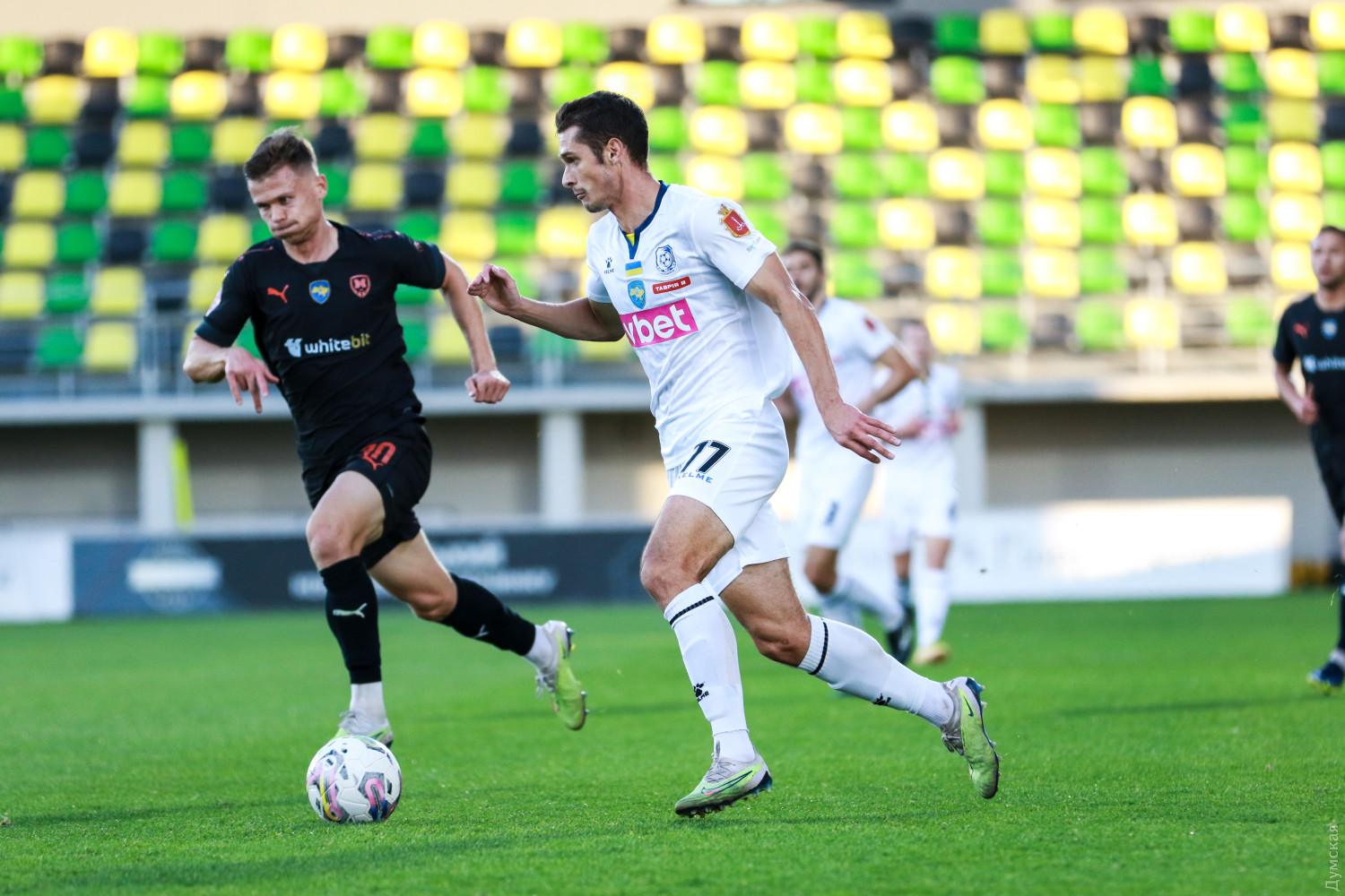 Опять «минус один»: «Черноморец» в меньшинстве уступил «Металлисту 1925»Одесский черноморец проиграл харьковскому «Металлисту 1925» со счетом 1:2. Арбитр матча Александр Шандор удалил Самсона Иеде за две желтые карточки в конце первого тайма. После перерыва соперник забил дважды и одержал волевую победу. Ключевой эпизод матча, как оказалось, произошел на 9 минуте. Самсон Иеде, получивший передачу от Зиги Бадибанги, вбежал в штрафную площадь, попал в «коробочку» из двух оппонентов и упал. Трудно сказать, было ли нарушение со стороны хозяев. Но главный судья матча Александр Шандор расценил падение Самсона как симуляцию и показал форварду желтую карточку. Моряки тем временем контролировали ситуацию на поле. Имели моменты, чтобы открыть счет Илья Путря и Александр Васильев. А забил снова Андрей Штогрин. Орест Кузык сделал навес с правого фланга, защитник харьковчан ошибочно сбросил мяч на дальнюю штангу, а там уже Штогрин был проворнее опекуна. Тот же Штогрин мог удвоить счет, но с его ударом справился Олег Мозиль. Еще одну попытку Андрея заблокировали защитники хозяев. Мяч отскочил за пределы штрафной площади, после чего состоялся жесткий стык с участием Самсона Иеде. Настроение у болельщиков одесской команды ухудшилось: вторая желтая, удаление, 50 минут матча впереди. Если бы не первая желтая Второй тайм у моряков откровенно не получился. В меньшинстве одесситы с трудом выходили в атаку. Уже на 52-й минуте «Металлист 1925» сравнял счет — это Андрей Борячук головой замкнул навес с правого фланга. А победный гол хозяева забили после ошибки одесситов в центре поля. Ари Моура точно пробил со средней дистанции — 2:1. На последних минутах «Черноморец» активизировался. Дада и Васильев имели отличные моменты, чтобы сравнять счет. Но счастье было не на стороне одесского клуба. Этот матч моряки проиграли. СМЕРТЬ РОССИЙСКИМ ОККУПАНТАМ! Заметили ошибку? Выделяйте слова с ошибкой и нажимайте control-enter |