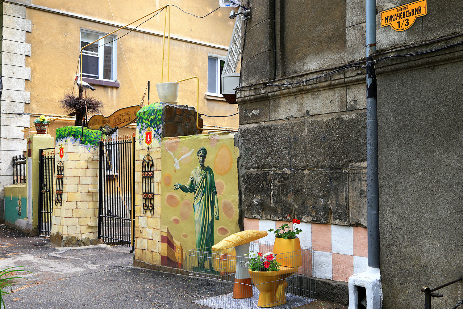 Аист и так далее душевно. А вот эти атрибуты, с которыми ассоциируют беглого, какое отношение имеют к Одессе и одесскому дворику?