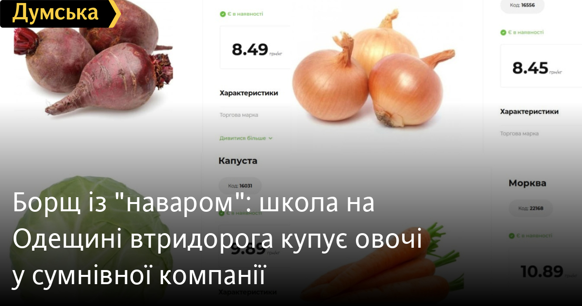 Борщ із «наваром»: школа на Одещині втридорога купує овочі у сумнівної компаніїУ ліцеї 3 в Березовці, де навчається 633 дитини та працює ще 92 викладачі, здається, варять найнаваристіший борщ у регіоні. Ціни на продукти тут завищені космічно, фантастично, казково. Вибирайте те визначення, яке вам більше до душі. Отже, в середньому переплата — удвічі. Але є позиції, де овочі коштують втридорога, в прямому сенсі. У школи всього два постачальники, причому в аукціоні брав участь тільки один. З нього і почнемо. Проваливши два конкурси загальною вартістю майже 400 тис. грн (на заморожену рибу та курятину), компанія все-таки змогла спіймати удачу за хвіст і виграти борщеві торги майже на півмільйона. Ми вирішили порівняти договірні ціни з ринковими. Щоб не виникало питання доставки на велику відстань, все купимо в місцевому АТБ. «Агротехленд» продав по 950 кг буряка і цибулі за 23 гривні кіло в обох випадках. Йдемо в супермаркет, все вдвічі дешевше буряк по 8,49 грн, цибуля взагалі — 8,45. Ще по 1600 кг моркви (10,89 грн в АТБ замість 23 грн) і яблук (37,95 замість 40 - мінімальне завищення у всьому тендері). Ліцей купив 350 кіло звичайної білокачанної капусти по 25 грн за кіло. Ми ж просили вразливих відійти від екранів. У супермаркеті вона коштує менше ніж 10 грн. Різниця в 2,5 раза. Найбільше хочуть купити бананів. Майже три тонни за 90 грн/кг. Йдемо в магазин і купуємо за 69,9 грн. Найскромніша позиція цього тендеру — 90 кг лимонів за 140 грн замість 119,8 грн в АТБ. Всього за тендером — понад 155,5 тис. грн переплати на 430 тис. договору. Більше як третина суми договору. Напевно, можна було купити і дешевше, але ми вирішили, що важливо і зручно, щоб все було у одного постачальника, а продукти були свіжими. А тепер кілька слів про сам «Агротехленд» і стиль його роботи на «Прозорро». Цього разу конкурентом компанії (а це був єдиний за довгий час «конкурентний» конкурс на продукти для ліцею 3) був ФОП Валерій Цирюта. Він же - засновник компанії ТОВ «Сільвер стар груп» (51%), а ось решта 49% у Віталія Мазанія — директора і засновника «Агротехленда». Так що компанії пов'язані, а конкуренція уявна. Крім того, компанія вже на олівці в Антимонопольного комітету України. Ба більше, саме ТОВ - це колишня компанія-пустушка. У 2023 році засновником був скандальний Віталій Третяк — бронзовий призер рейтингу за кількістю компаній в Україні (1450 фірм) і активний учасник махінацій з ПДВ. Нинішній директор Мазаній — теж юрист і пов'язаний з Третьяком. В цілому створена група компаній, пов'язаних з одними і тими ж людьми, які разом подаються на тендери і створюють видимість конкуренції. Так що наш випадок — лише один з безлічі. Цікаво, що відсоток перемог у тендерах у «Агротехленда», м'яко кажучи, невисокий — 5,31%. І якщо в 2024-му і 2025-му компанія виграла конкурсів всього на півмільйона, цього року удача цій компанії посміхається явно частіше. Станом на середину лютого — вже майже 7 мільйонів грн тендерів в активі є. З ким же ще торгує «Агротехленд»? В Одеській області явний фаворит — Березовський район. Управління освіти, молоді, спорту та культури Березовської міськради 708 тис. грн. Опорний ліцей 2 414 тис. грн. Розквитовська сільська рада 568 761 грн Відзначилася компанія і у Веснянській сільській раді — два контракти на 1,6 млн грн. В Одесі працювали з Територіальним одеським вузлом урядового зв'язку Держспецзв'язку — контра
