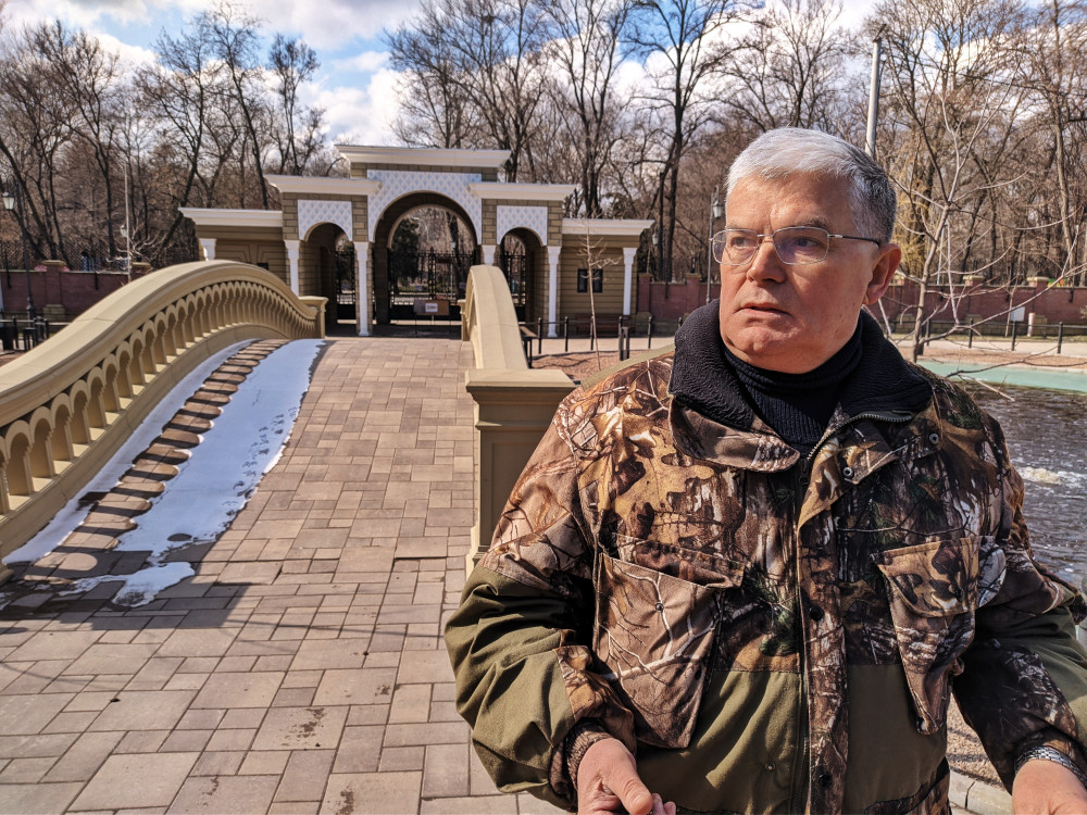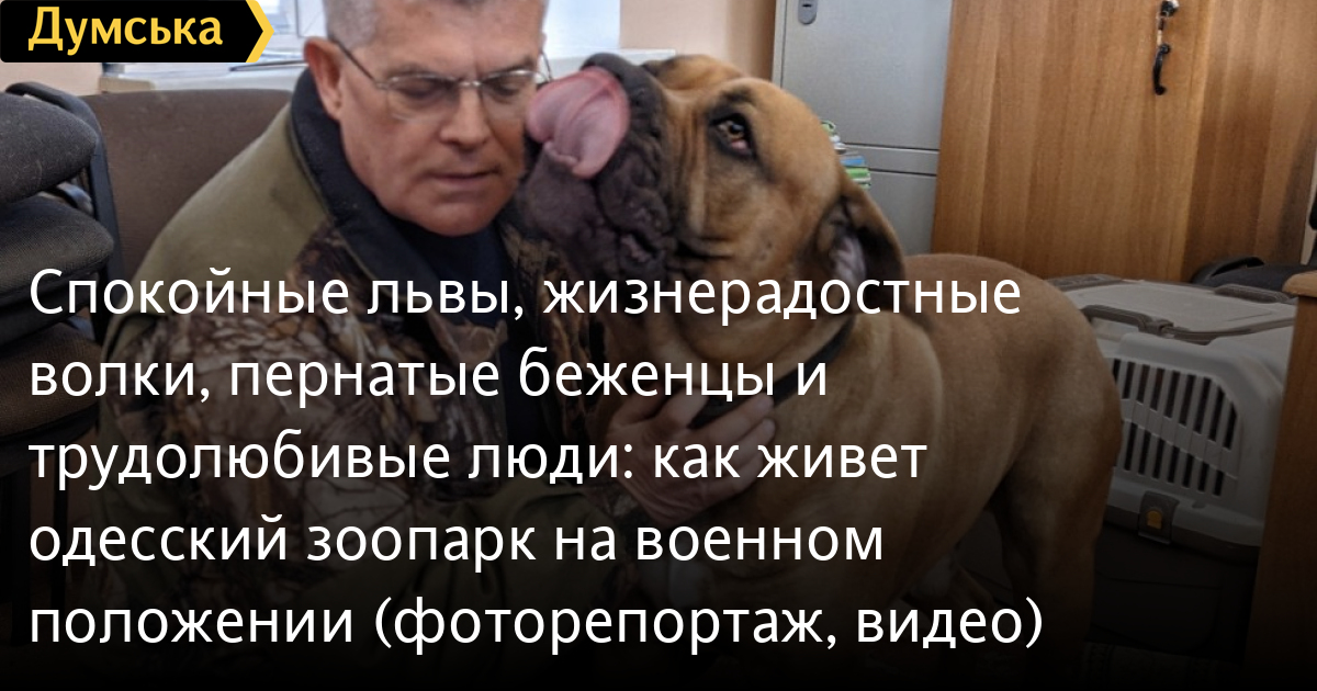 «Как только прогремели первые взрывы, я сразу перебрался сюда, — рассказывает Беляков. — Взял самое необходимое — раскладушку и собаку Годрика, это южноафриканский бурбуль. С тех пор живу здесь. Не дай Бог, что-то случится, разрушится вольер, испугаются животные — я должен быть всегда на месте».