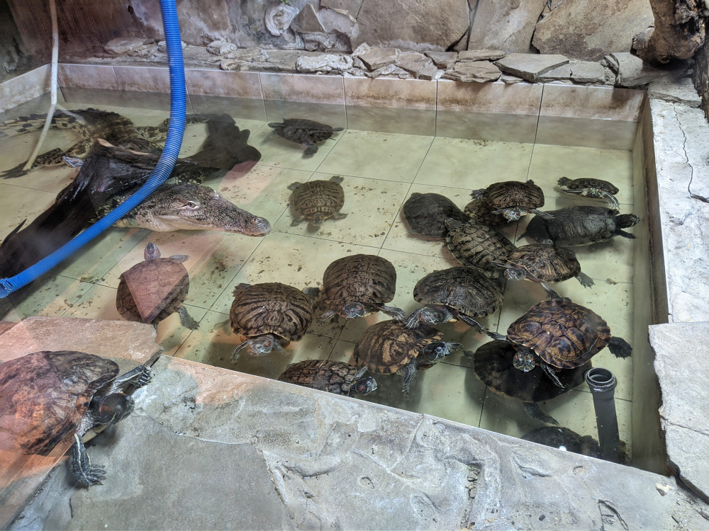 Идем на экскурсию по служебным кабинетам зоопарка. Все отапливаемые помещения заставлены клетками, вольерами, переносками, аквариумами.